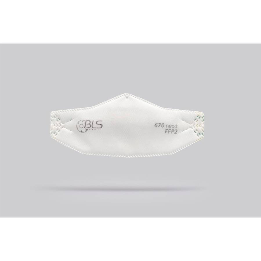Flat-fold (3-panel) FFP2 NR D mask, without valve, with internal nose clip, hypoallergenic elastic straps, Dolomite test, 10-year shelf life. Protects against non-volatile solid/liquid particles up to 12 × TLV.