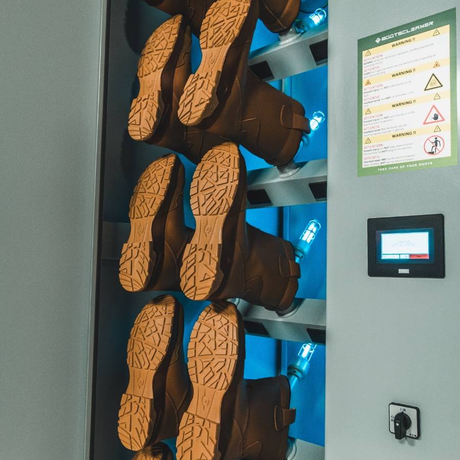 The BOOTSCLEANER BUSINESS SOLUTION is an advanced system that effectively cleans and maintains the inside (optional exterior disinfection) of your shoes in an innovative way. Not only does the BOOTSCLEANER BUSINESS SOLUTION provide thorough cleaning and enhanced hygiene, but it also extends the lifespan of your shoes. With our drying system, UV-C light, and antibacterial perfume, we provide a complete solution for shoe care.