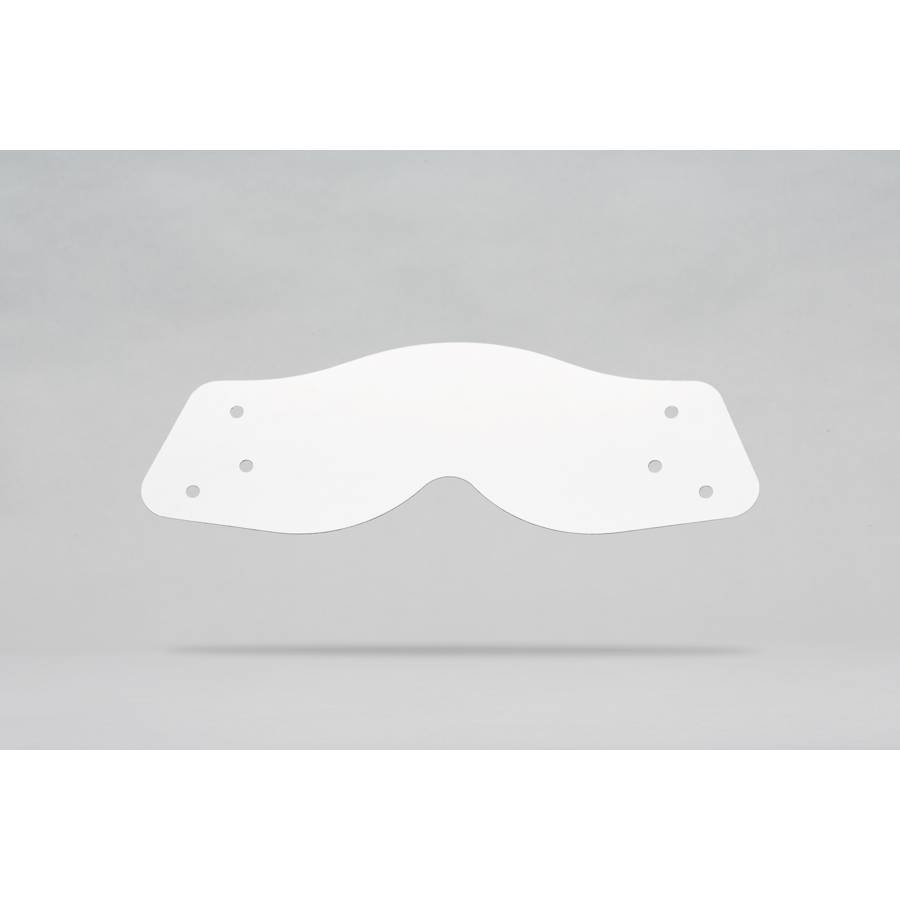Polycarbonate protective film for the visor of BLS 5000 series full-face masks. Side holes fit onto the mask's side hooks. Protects against mechanical wear, e.g., sandblasting or generally in the presence of abrasive substances.